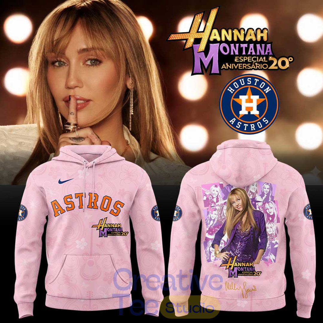 This limited-edition soft pink hoodie blends Hannah Montana’s iconic pop-star energy with your favorite MLB team’s pride. The front features a vibrant collage of Miley Cyrus as Hannah Montana in her classic purple sequin outfit, paired with the official “Hannah Montana 20th Anniversary” logo. The back showcases the same eye-catching collage with the bold team script across the bottom — Dodgers, Padres, Rangers, Astros, and more.