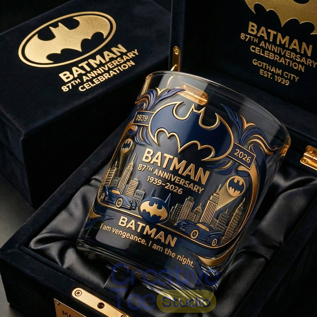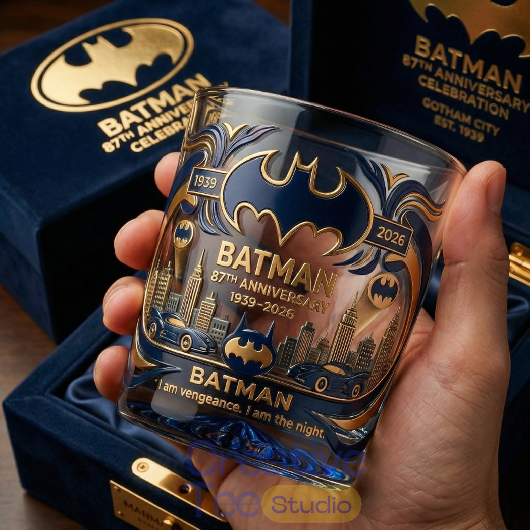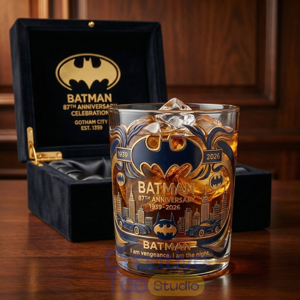 Raise a glass to the Dark Knight with the Batman 87th Anniversary Whiskey Glass – Gotham Legacy Edition, a premium tribute to 87 years of Gotham’s greatest protector (1939–2026).