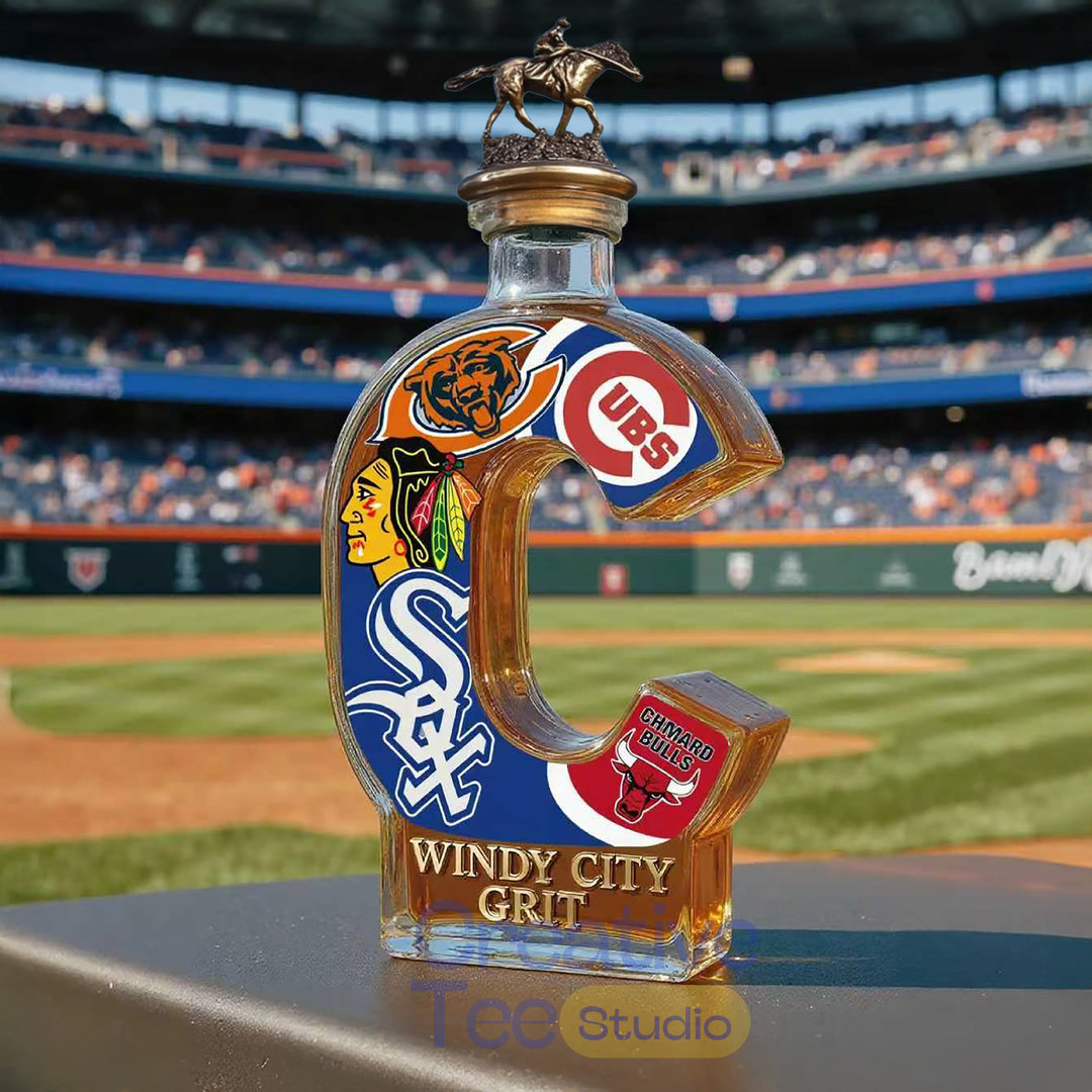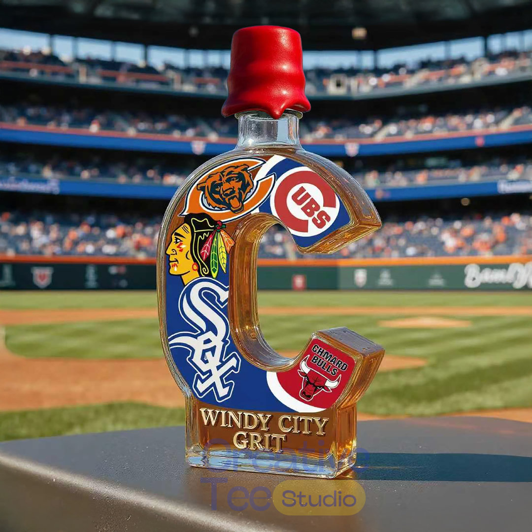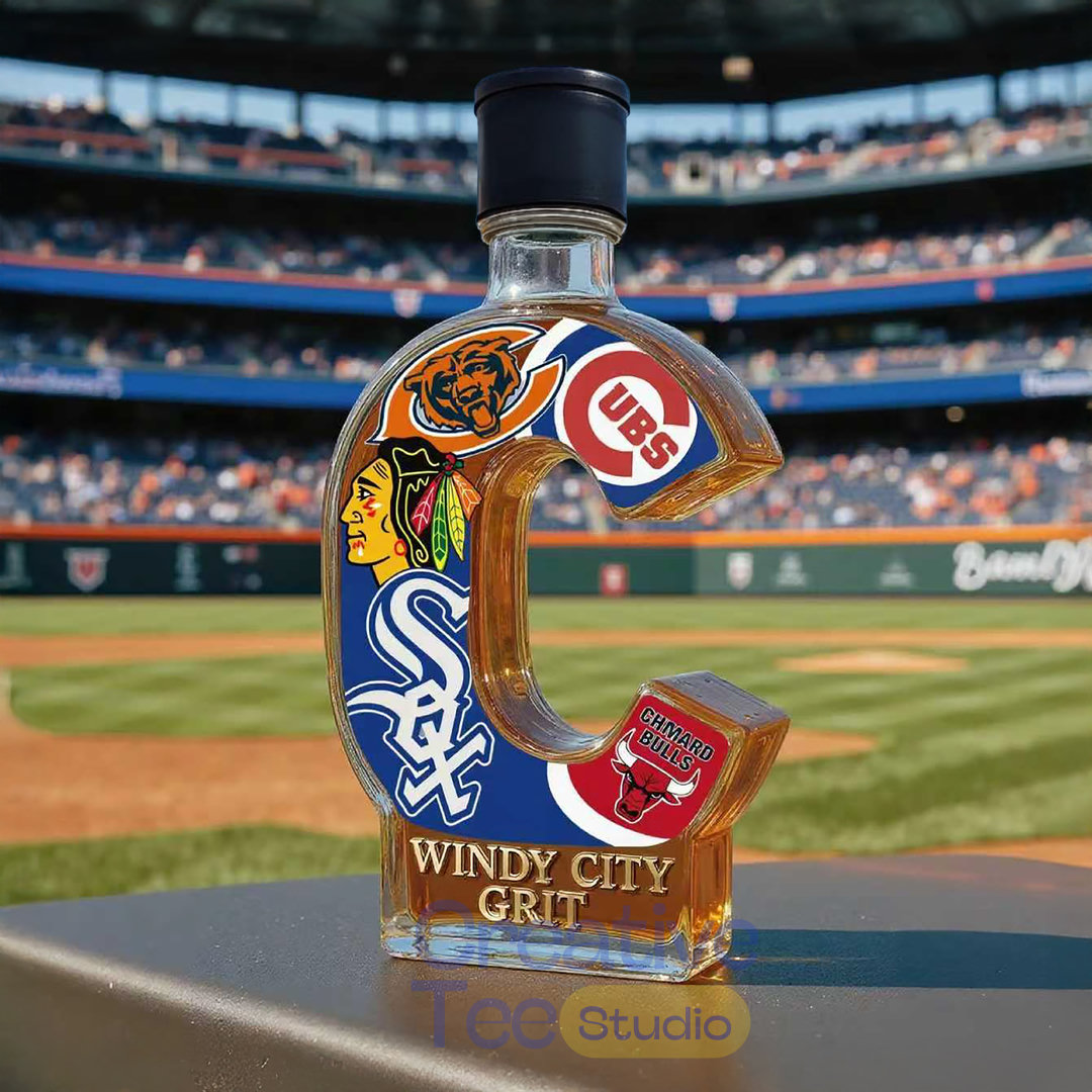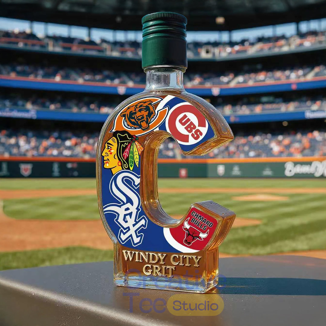 The bottle itself is custom-sculpted in the shape of the iconic letter ‘C’, representing both the city and the many championship banners raised over the decades. Adorned with the logos of the Cubs, White Sox, Bears, Blackhawks, and Bulls, it visually unites the city’s greatest sporting empires. More than just a spirit vessel, this is a symbol of the hard-won resilience proudly proclaimed by the phrase “WINDY CITY GRIT” emblazoned across the base.