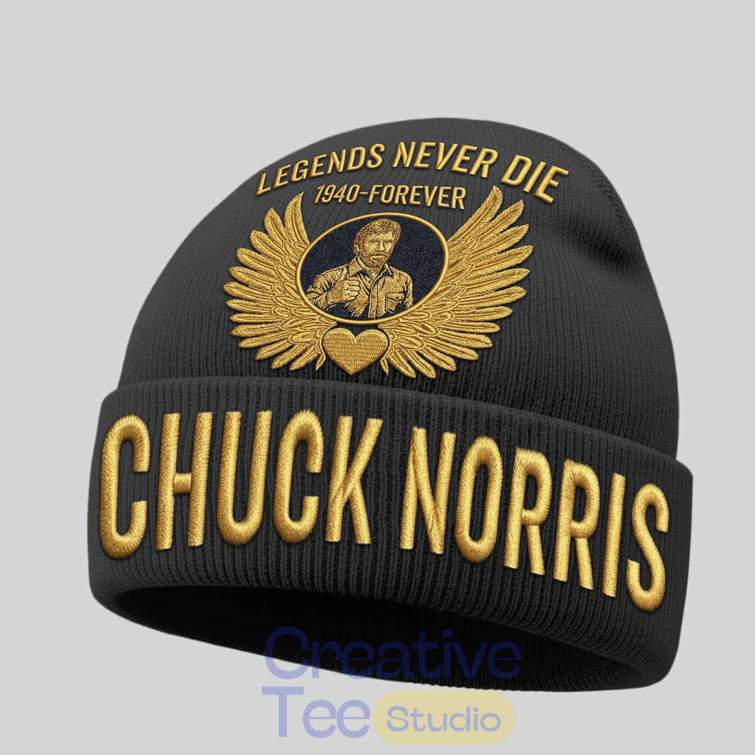 This isn’t just a beanie; it’s a statement of invincibility. For the fans who have followed Chuck from the karate championships of the 60s to the meme-fueled dominance of the modern era, this “Legend Never Die” gear carries a sense of timelessness. It represents the idea that strength, discipline, and a good sense of humor are the ultimate tools for success.