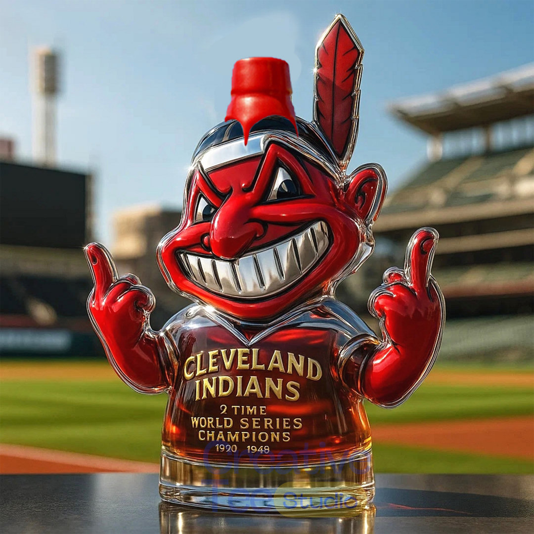 Cleveland Indians Chief Wahoo 2-Time World Series Champions Whiskey Bottle