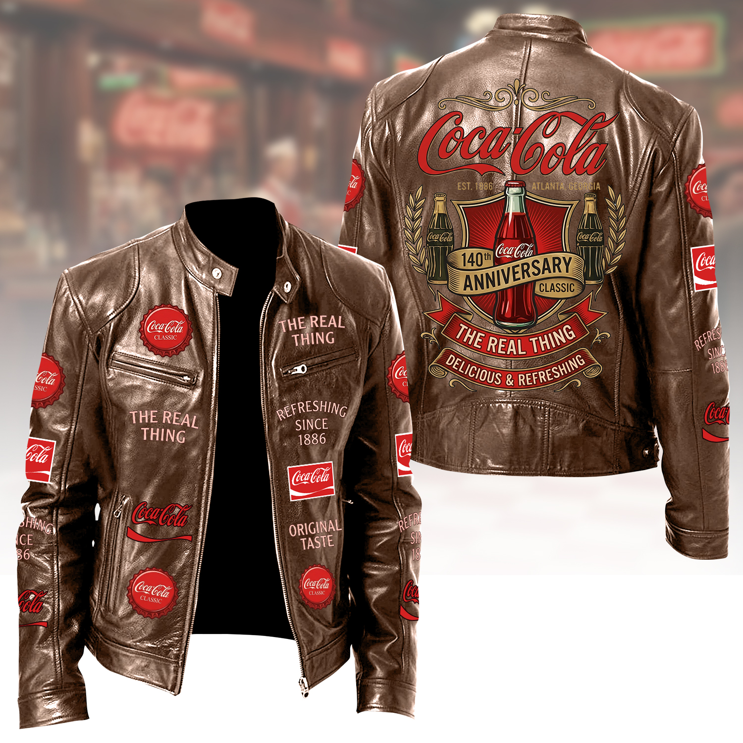 Celebrate 140 years of refreshment with the Coca-Cola “The Real Thing” 140th Anniversary Leather Jacket. Since the first glass was poured in Atlanta in 1886, Coca-Cola has become the world’s most iconic brand. This 2026 limited-edition jacket blends timeless Americana with premium craftsmanship, featuring high-definition heritage patches and a classic “Coke Red” and black aesthetic. It’s the ultimate statement piece for collectors who appreciate the history of an American legend.
