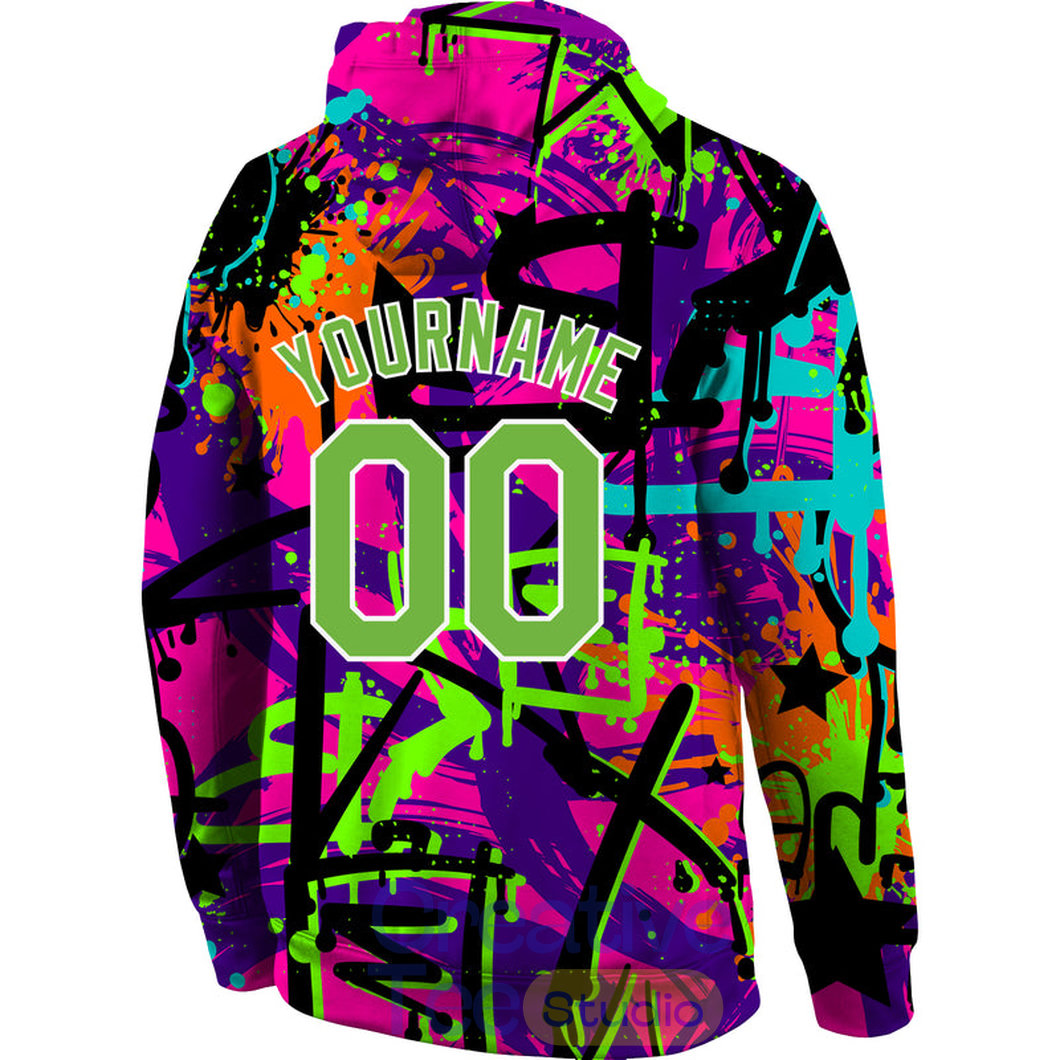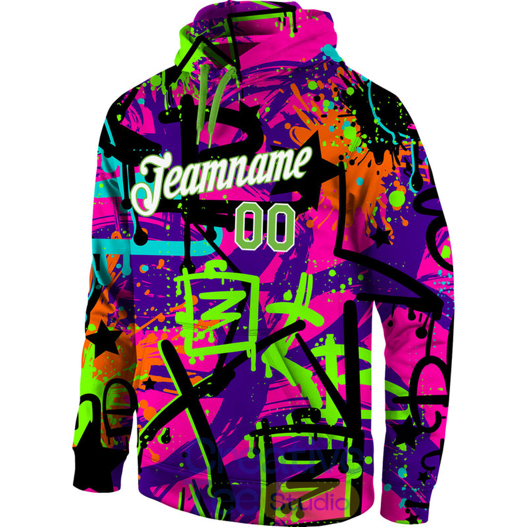 Custom Stitched Graffiti Pattern Neon Green-White 3D Sports Pullover Sweatshirt Hoodie