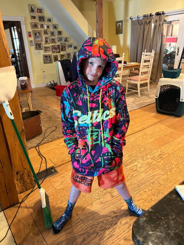 Machine wash cold and tumble dry on low heat to preserve the printed graphics and fleece lining.