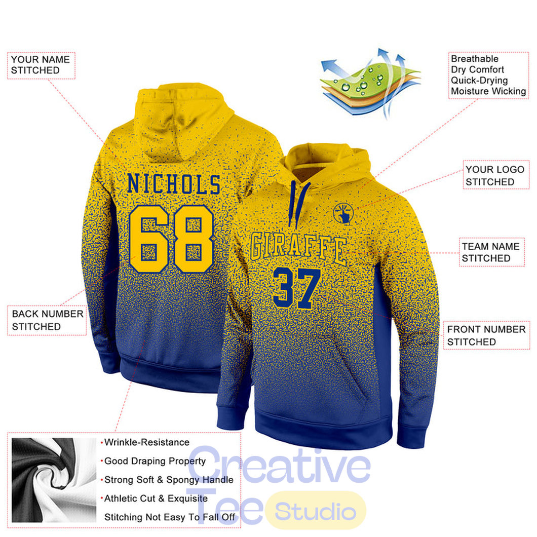 Custom Stitched Royal Gold Fade Fashion Sports Pullover Sweatshirt Hoodie