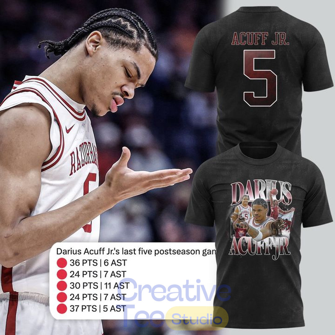 Show your support for the next Razorback star with the Darius Acuff Jr. Arkansas Razorbacks T-Shirt!