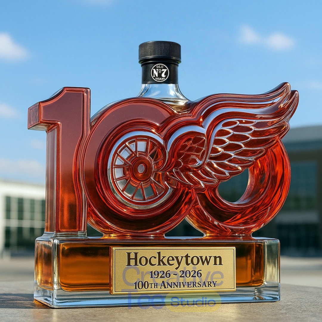 Celebrate a century of greatness with the Detroit Red Wings ‘Hockeytown’ 100th Anniversary Whiskey Bottle. This “Hockeytown” masterpiece features the iconic Winged Wheel fused into a stunning “100” numeral design. Whether displayed in your fan cave or given as a premium gift, this limited-edition collectible captures the spirit of 11 Stanley Cups and 100 years of Detroit hockey history. Own a piece of the legacy today.