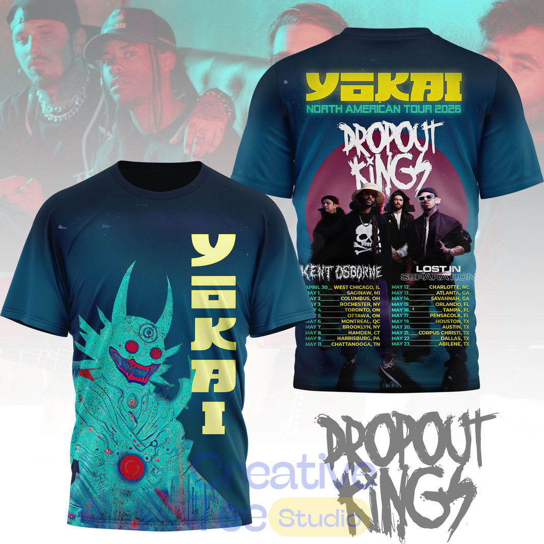 Gear up for the chaos with the official Dropout Kings YAKAI Tour 2026 T-Shirt — the must-have merch for fans of the genre-blending rap-rock heavyweights on their biggest run yet.