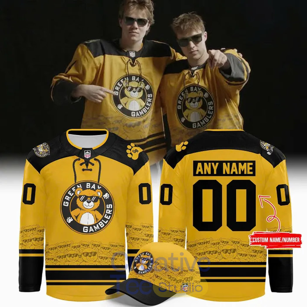 Green Bay Gamblers 2026 Teddy Bear Custom Hockey Jersey