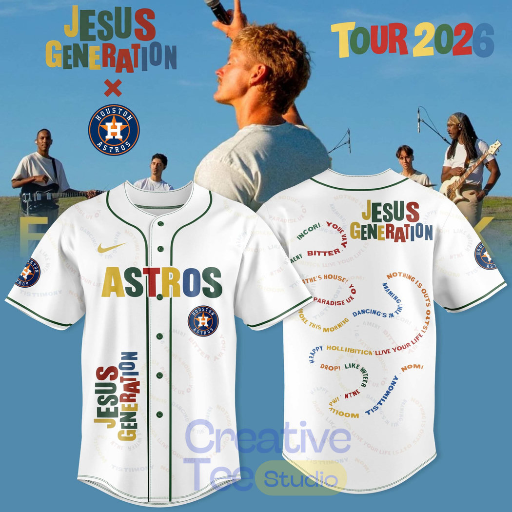 The Houston Astros x The Jesus Generation 2026 Tour Baseball Jersey is an inspiring, limited-edition collaboration that blends the passion of Houston Astros baseball with the uplifting Christian worship energy of Forrest Frank’s massive The Jesus Generation Tour.