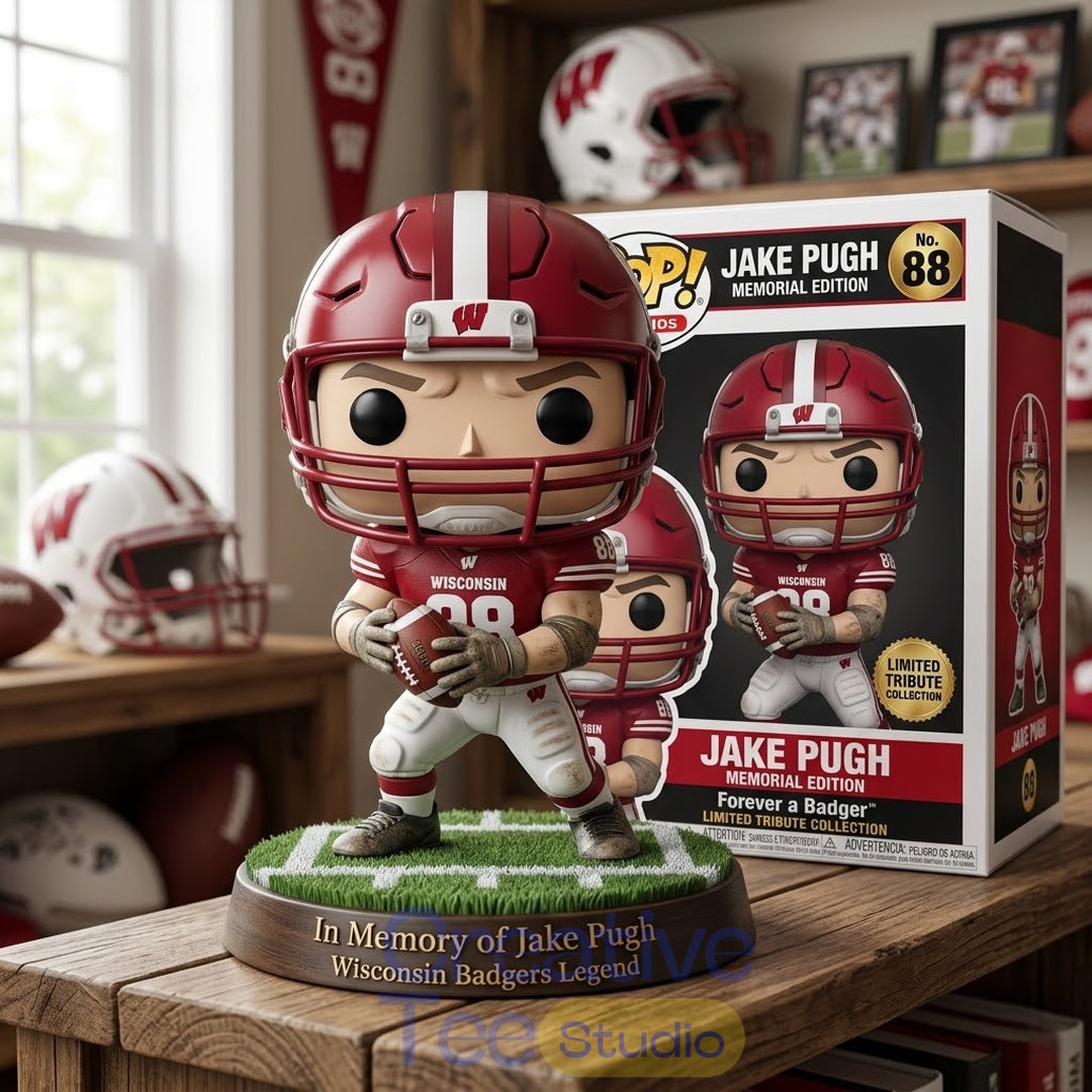 This special Jake Pugh Memorial Edition Commemorative Pop Figure honors the Wisconsin Badgers football legend #38.
