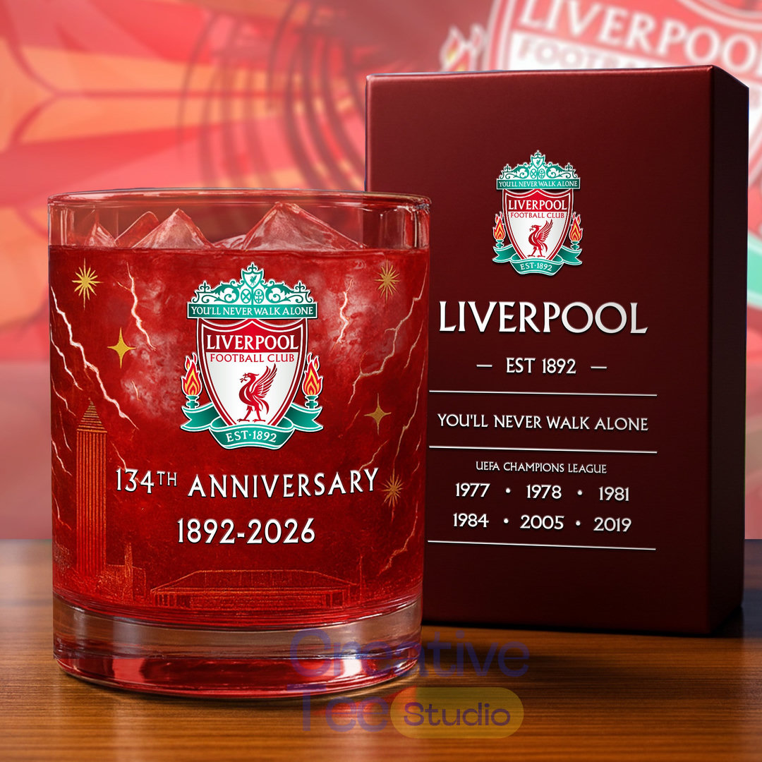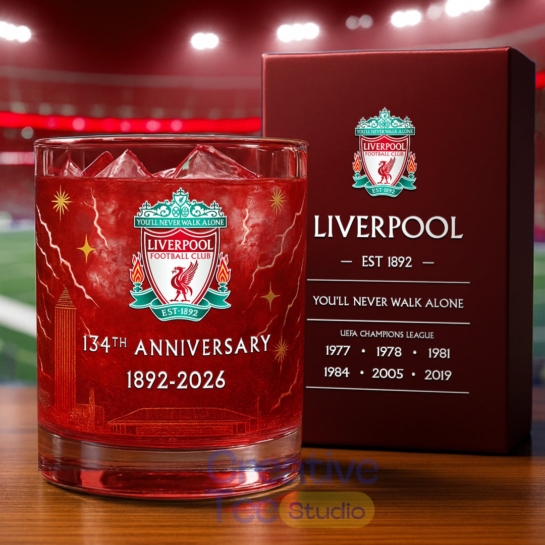 Raise your glass to Anfield legends with the Liverpool FC 134th Anniversary Whiskey Glass! This beautifully etched rocks glass honors 134 years of unrivaled passion, glory, and the iconic “You’ll Never Walk Alone” spirit, spanning from 1892 to 2026.