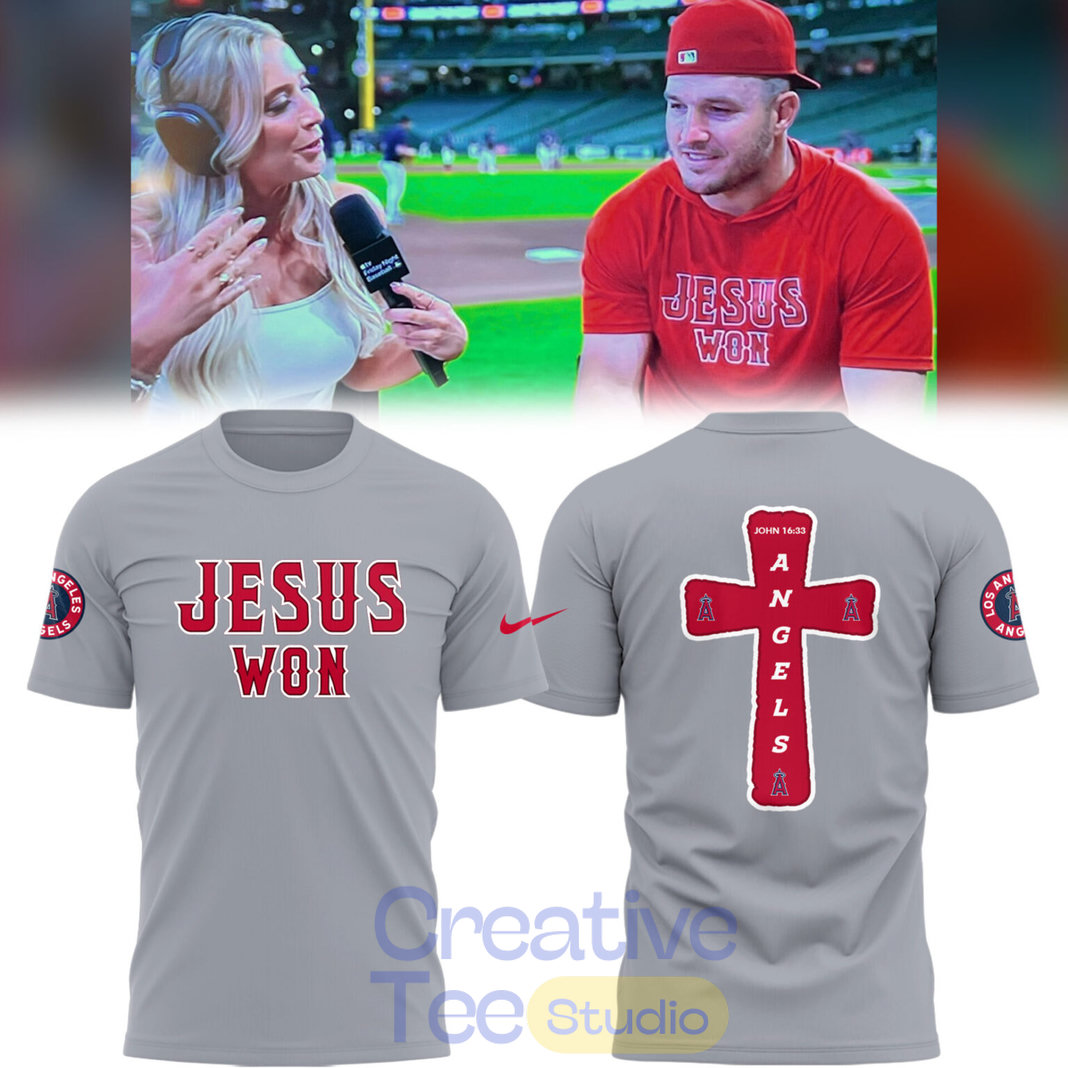 This isn’t just a t-shirt; it’s a testimony. For the families who have made the Angels a part of their weekend traditions and for the individuals who find strength in their spiritual walk, the “Jesus Won” tee carries a deep personal connection. It represents the ultimate “walk-off” victory—the peace that comes from knowing the final score is already written. It’s a celebration of grace, grit, and the Halo City.