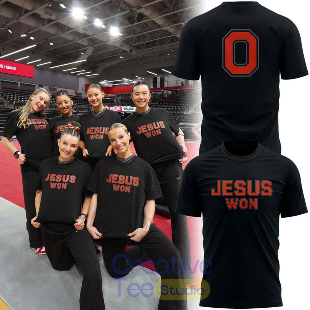The Ohio State Buckeyes Jesus Won Black T-Shirt is a bold, faith-inspired piece that unites Buckeye pride with a powerful message of victory in Christ. This striking black tee features the standout “JESUS WON” slogan boldly printed in vibrant orange across the front—echoing the iconic scarlet and gray of Ohio State—while the back proudly displays a large “O” (for Ohio State) topped with the same triumphant declaration.