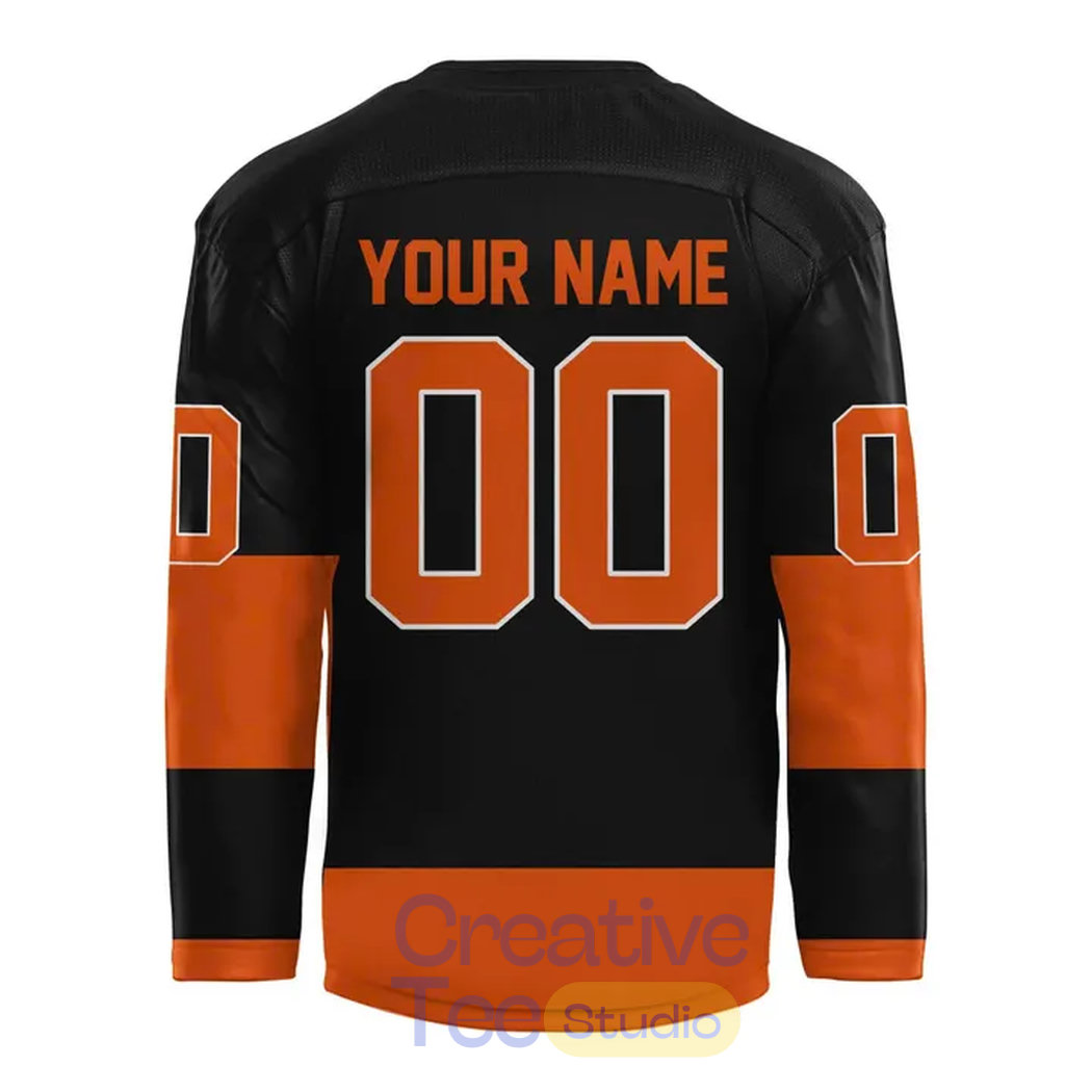 This authentic hockey-style jersey rocks a bold black base with signature orange accents, featuring classic “OKLAHOMA STATE” lettering across the chest in vibrant orange tackle twill. The iconic “OSU” logo proudly adorns the front, while orange stripes wrap the sleeves and hem for that true Cowboys edge. Customize it with YOUR NAME and NUMBER on the back in classic white/orange lettering, making it feel like a game-worn piece straight from the ice—perfect for channeling the energy of those epic Bedlam matchups at venues like the BOK Center in Tulsa.