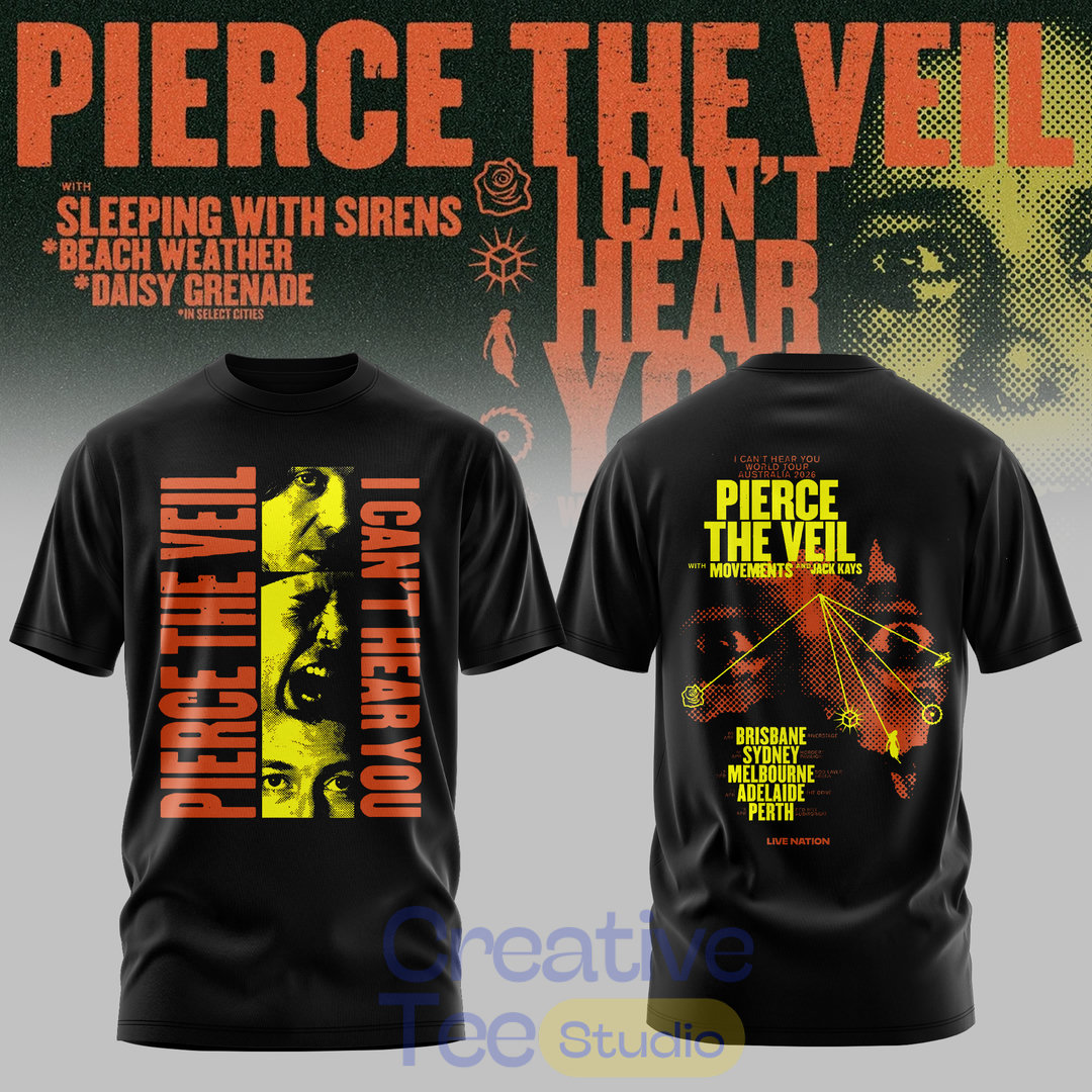 Keywords: Pierce the Veil, I Can’t Hear You World Tour, Australia 2026, t-shirt, concert merchandise, post-hardcore, limited-edition.