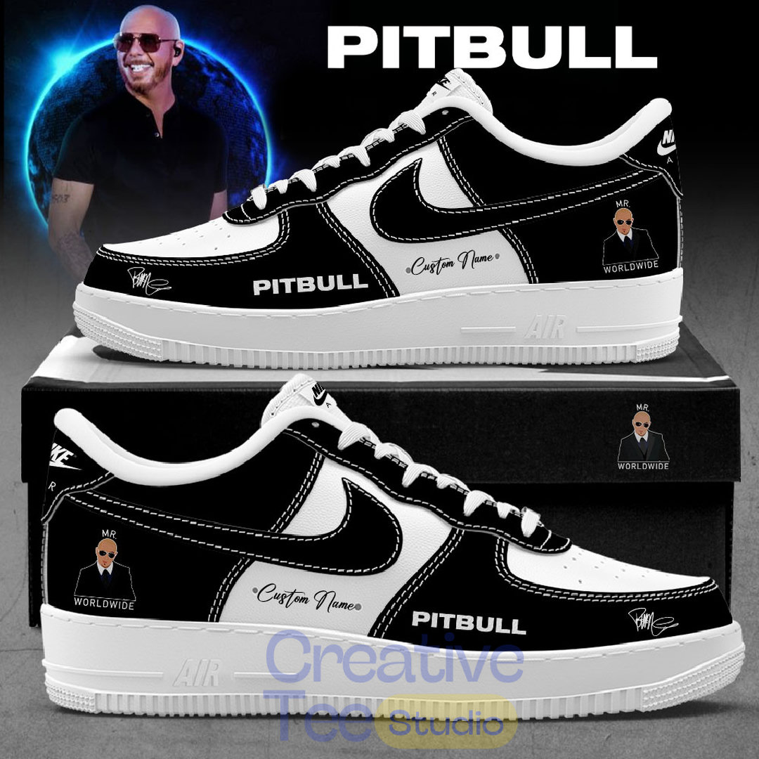 These bold black-and-white customs feature Pitbull’s iconic logo and portrait, with “PITBULL” and “Mr. 305” prominently displayed. The sleek design includes “I’m Back Tour 2026” detailing and signature branding on the heel and tongue, making them the ultimate statement piece for any Mr. Worldwide fan.
