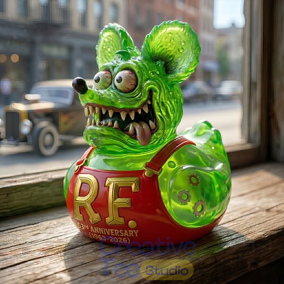 Celebrate over six decades of counter-culture chaos with the Rat Fink 63rd Anniversary Collectible Duck. This limited-edition 2026 release honors the anniversary of the year the Fink was born. It’s a wild, high-octane fusion of the classic rubber duck and the lowbrow art icon that defined a generation of gearheads and rebel artists. Whether you’re a lifelong Ed Roth devotee or a collector of the weird and wonderful, this figure is a permanent invitation to “Keep on Finkin’“.