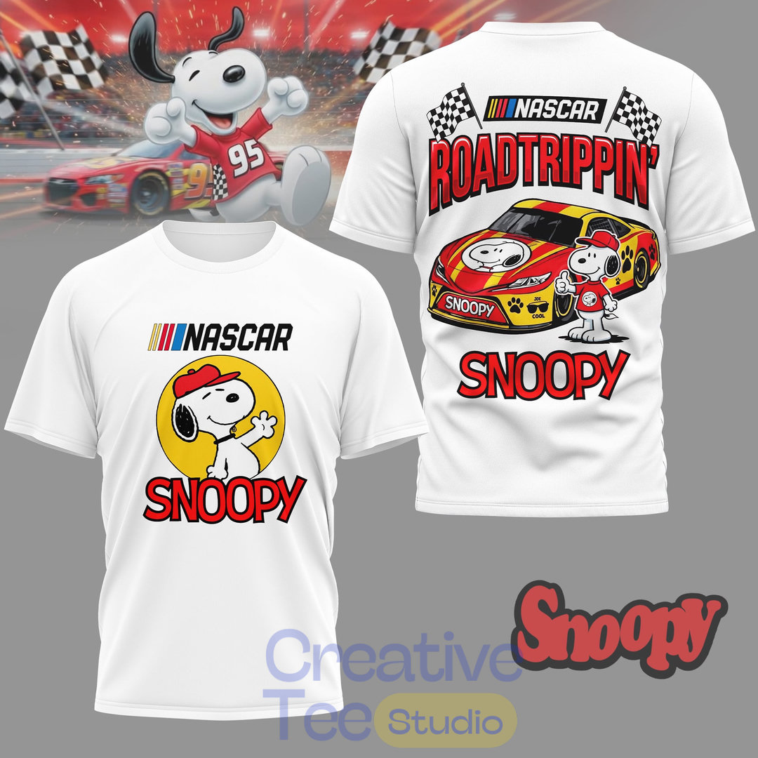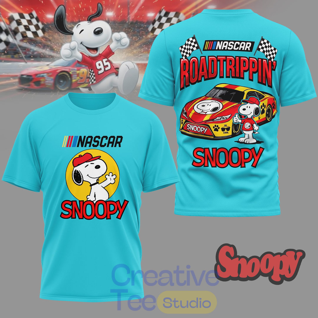 Get ready to race in style with the exclusive Snoopy x NASCAR Roadtrippin’ Special Tee!