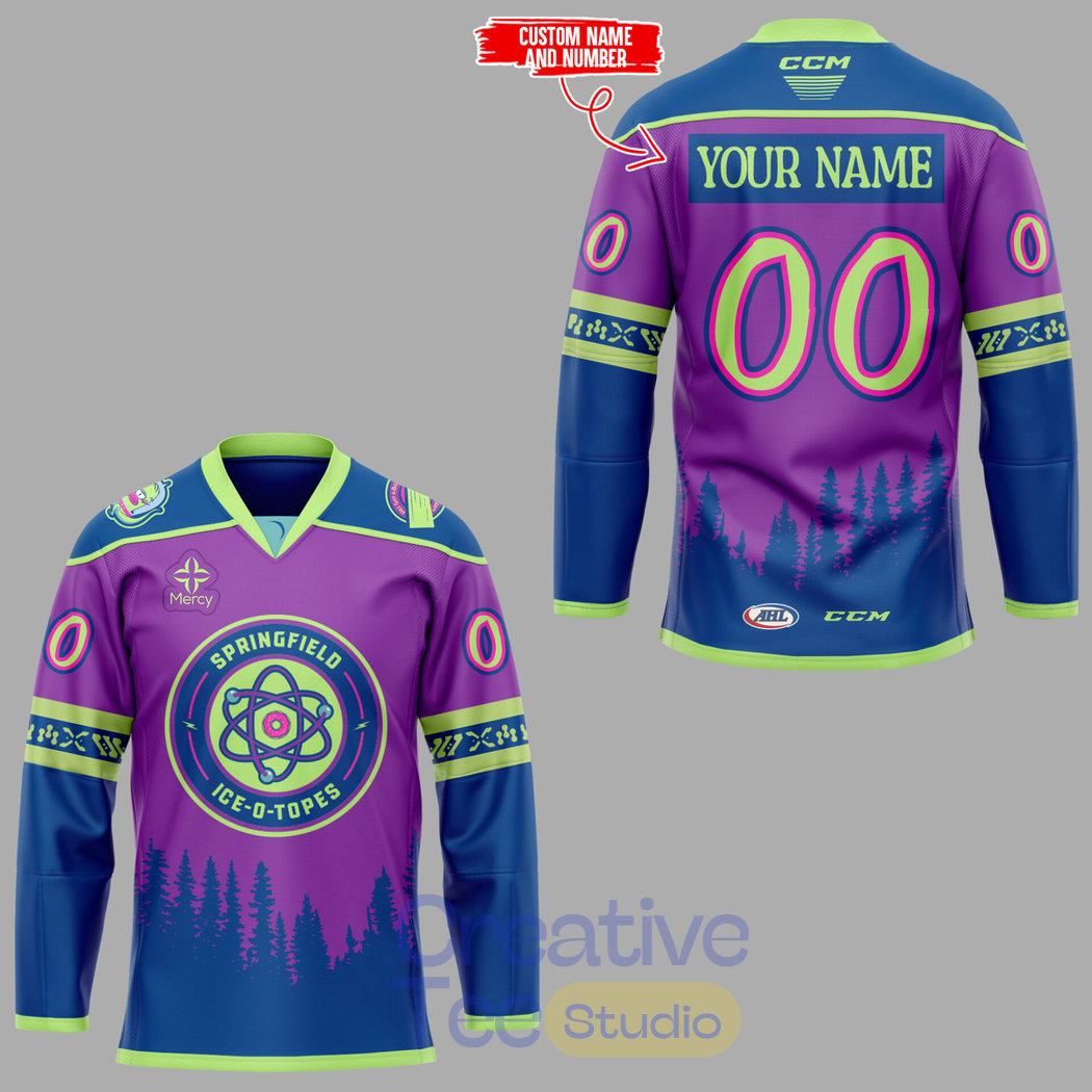 Step into the “perfectly cromulent” world of the Springfield Thunderbirds 2026 Ice-O-Topes Night Custom Jersey. Celebrating the most popular promotion in the AHL, this specialty jersey pays homage to The Simpsons and the “What If?” scenario where the team was named after the local nuclear isotopes. Featuring a “radioactive” design and customizable name/number, this jersey is a must-have for Springfield fans and animation buffs alike.
