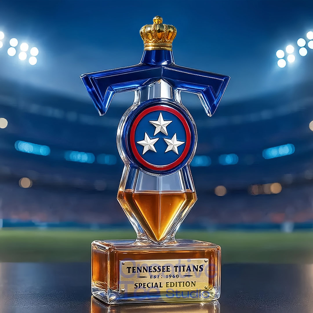 Honor over 60 years of football excellence with the Tennessee Titans Legacy Special Edition Whiskey Bottle. This masterfully crafted decanter is more than a vessel; it’s a centerpiece for the true “Titan Up” faithful. Featuring the iconic “T” logo and a sleek, stadium-inspired silhouette, it’s the ultimate tribute for collectors and fans alike. Elevate your home bar with a piece of Nashville history today.