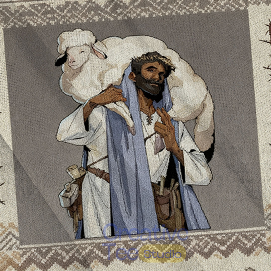 The artwork depicts Christ not just as a figure of peace, but as a formidable presence of “Divine Victory“. In a direct nod to the game’s iconography, the design often features Christ carrying a sheep (the “Lamb of God”) while surrounded by the fiery oranges, deep crimsons, and laurel-wreath borders synonymous with Zagreus and the Olympian gods.