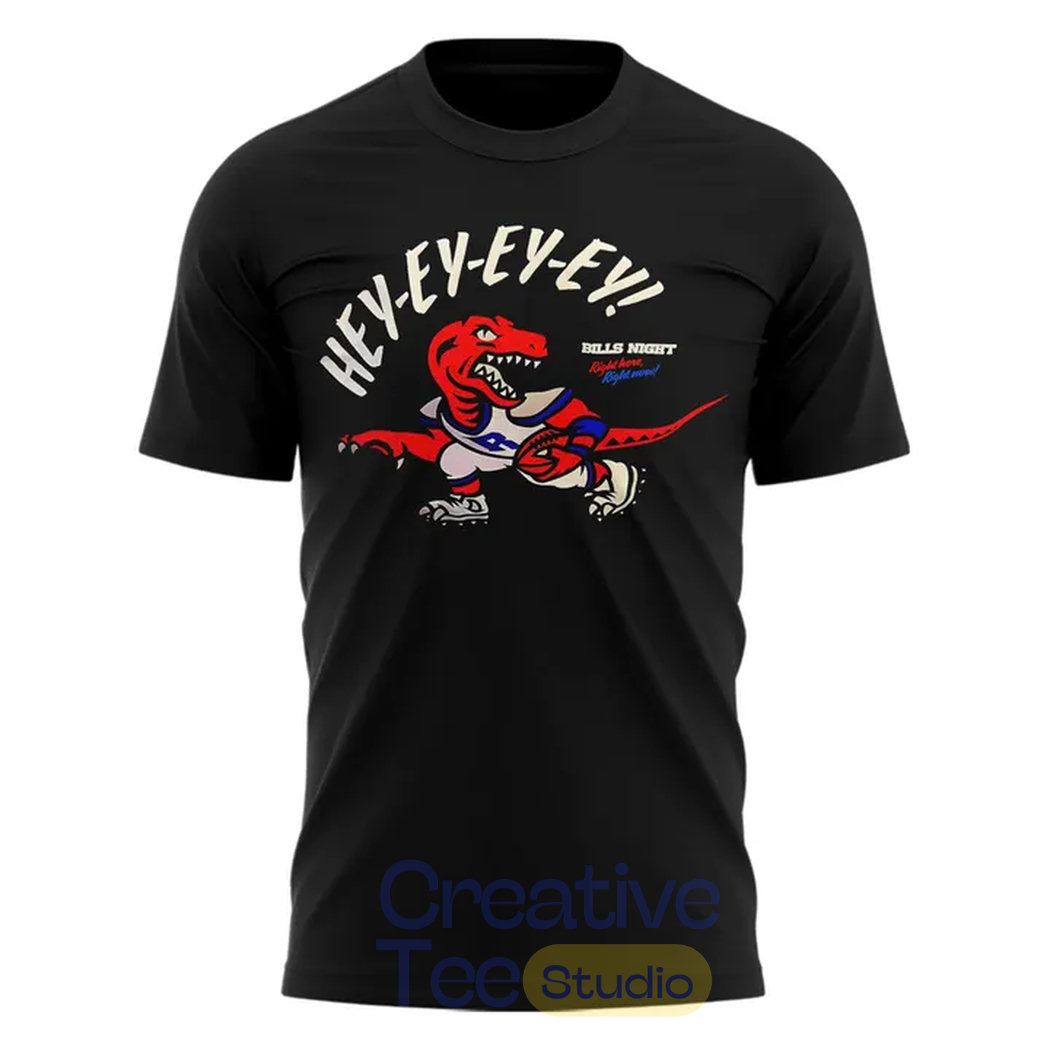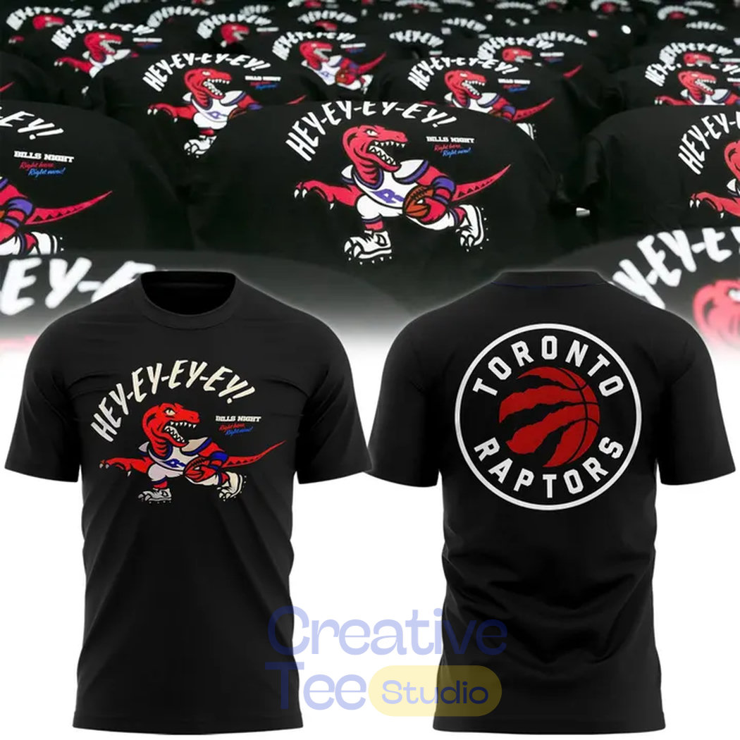 Bring the crossover energy to your wardrobe with the Toronto Raptors Bills Night Special Tee — celebrating the epic first-ever Bills Night at Scotiabank Arena! This bold black unisex t-shirt blasts “HEY-EY-EY-EY-EY!” in fiery red arched across the front, channeling the iconic Buffalo Bills “Shout” chant that had Bills Mafia roaring during the Raptors vs. Knicks showdown on March 3, 2026. Flip it to the back for the classic Toronto Raptors logo encircled in pride, blending We The North hoops spirit with Bills Mafia vibes. Inspired by the viral NBA-NFL fusion that gave away thousands of these collabs to fans in attendance — complete with guest appearances, traditions, and pure cross-border hype. Soft cotton comfort for game days, tailgates, or repping both squads year-round. Perfect for any fan who lives for the chant, the dinos, and the 🦬 energy! 🏀🦬🔥