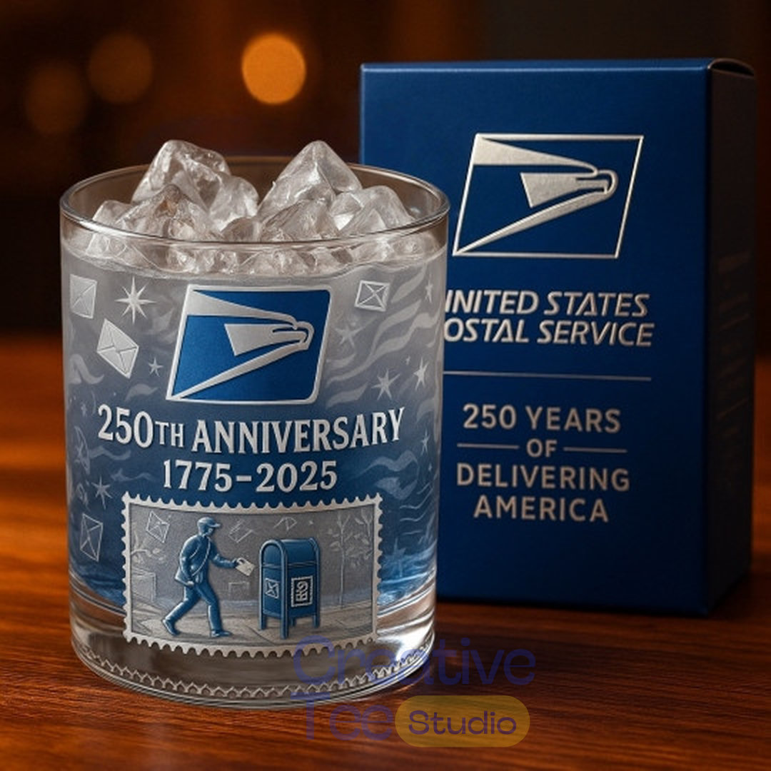 The USPS 250th Anniversary Whiskey Glass is the elegant limited-edition tumbler commemorating 250 years of the United States Postal Service from 1775 to 2025. This premium rocks glass honors the USPS’s enduring legacy of “Delivering America” with intricate etched designs featuring the iconic eagle logo, historical mail carrier scenes, and patriotic motifs. Perfect for postal workers, history buffs, or anyone who appreciates American heritage, it’s a sophisticated way to enjoy your favorite whiskey, bourbon, or spirit.