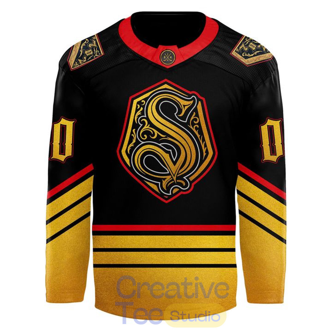 What sets this jersey apart is its customization option. Personalize your jersey with your name and preferred number, letting you truly embrace your identity as a devoted fan. The bold team colors and emblem prominently displayed on the front and sleeves show your unwavering support for the Vegas Sin Hockey Club. The intricate stitching and durable design ensure that this jersey will withstand the test of time, making it a worthy addition to your sports wardrobe.